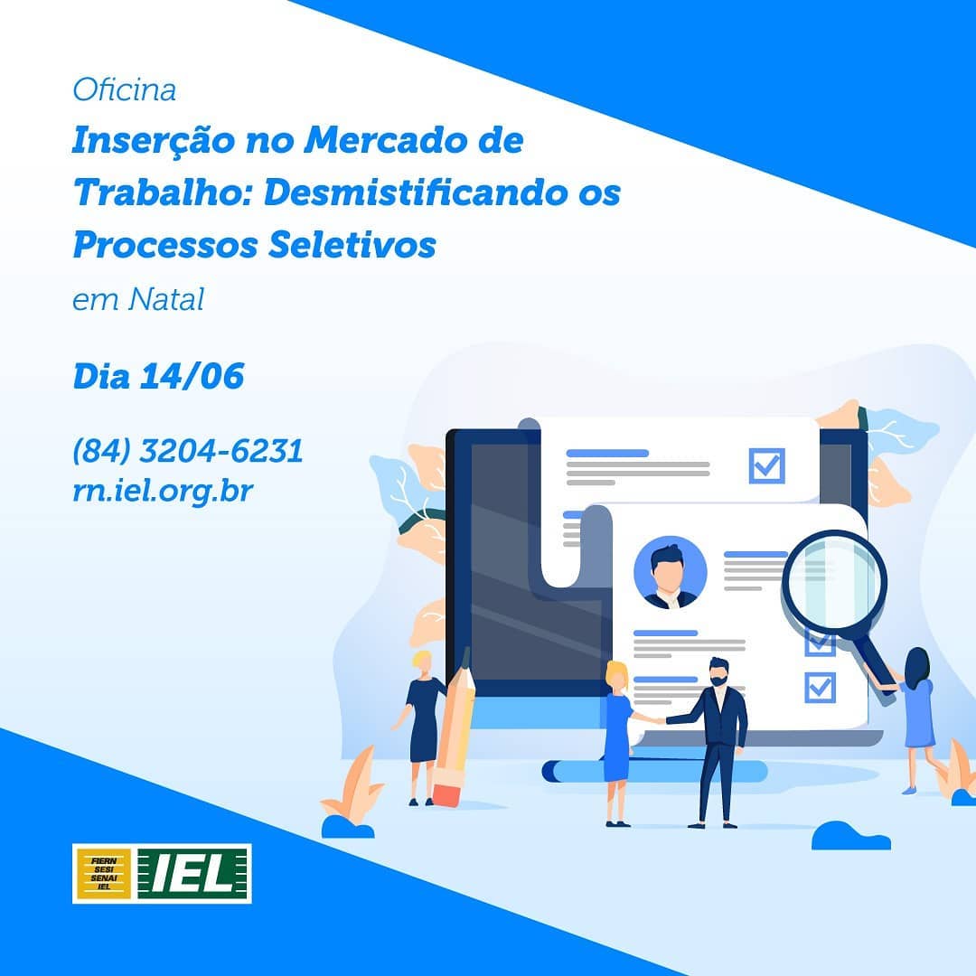 O IEL RN está com inscrições abertas para a oficina “Inserção no Mercado de Trabalho: Desmistificando os Processos Seletivos”. A oficina vai ser no dia 14 de junho, na sede da Casa da Indústria. As inscrições podem ser feitas pelo site do IEL-RN (rn.iel.org.br). Para mais informações, está disponível o telefone número 3204.6231. …