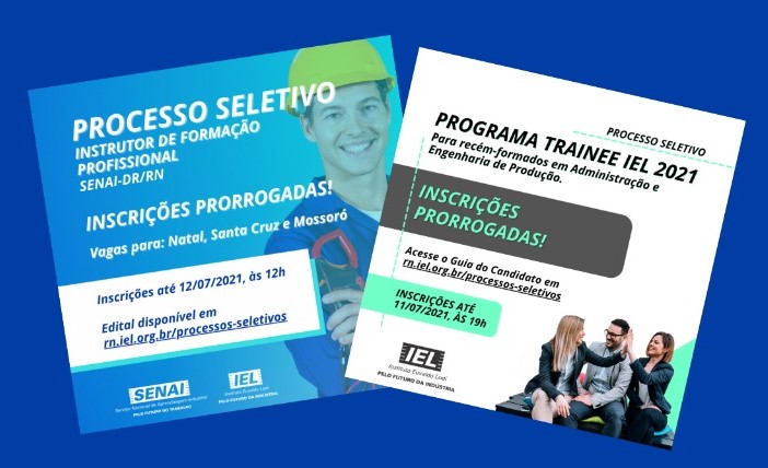 O Instituto Euvaldo Lodi (IEL-RN) prorrogou o prazo para as inscrições do Processo Seletivo do Programa Trainee IEL 2021 para recém-formados nos cursos de nível superior de Administração e Engenharia de Produção. Interessados podem se inscrever até às 19 horas do dia 11 de julho. As etapas da seleção são análise curricular …