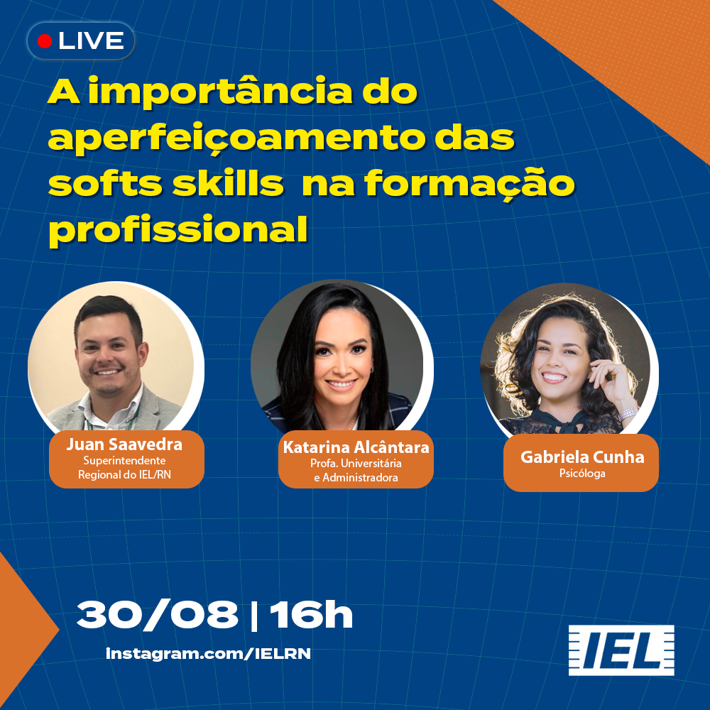 Concluindo as comemorações do mês do estagiário, o Instituto Euvaldo Lodi, IEL-RN, realizou na tarde desta segunda-feira (30), a live “A Importância do Aperfeiçoamento das Soft Skills na Formação Profissional”, com a professora universitária e consultora Katarina Alcântara, a psicóloga Gabriela Cunha e o superintendente do IEL-RN, Juan Saavedra. “As soft skills são …