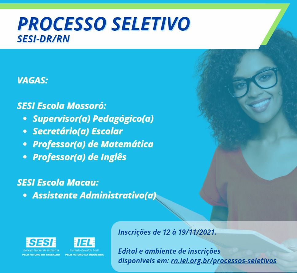 O Serviço Social da Indústria está com inscrições abertas até a próxima sexta-feira, dia 19, para o processo seletivo na área de Educação. As vagas são destinadas a profissionais interessados em integrar a Equipe de Educação do SESI/RN, nas unidades São Gonçalo do Amarante, Macau e Mossoró. As inscrições podem ser feitas por meio …