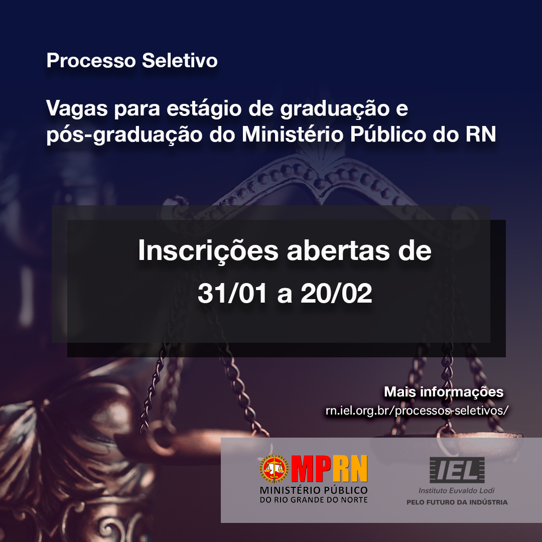 O Instituto Euvaldo Lodi (IEL-RN) inicia, na próxima segunda-feira (31), as inscrições para o processo seletivo de estagiários de graduação e pós-graduação para o Ministério Público do Rio Grande do Norte (MPRN). O número de vagas não foi divulgado, tendo em vista que a seleção é para formação de cadastro reserva. As inscrições …
