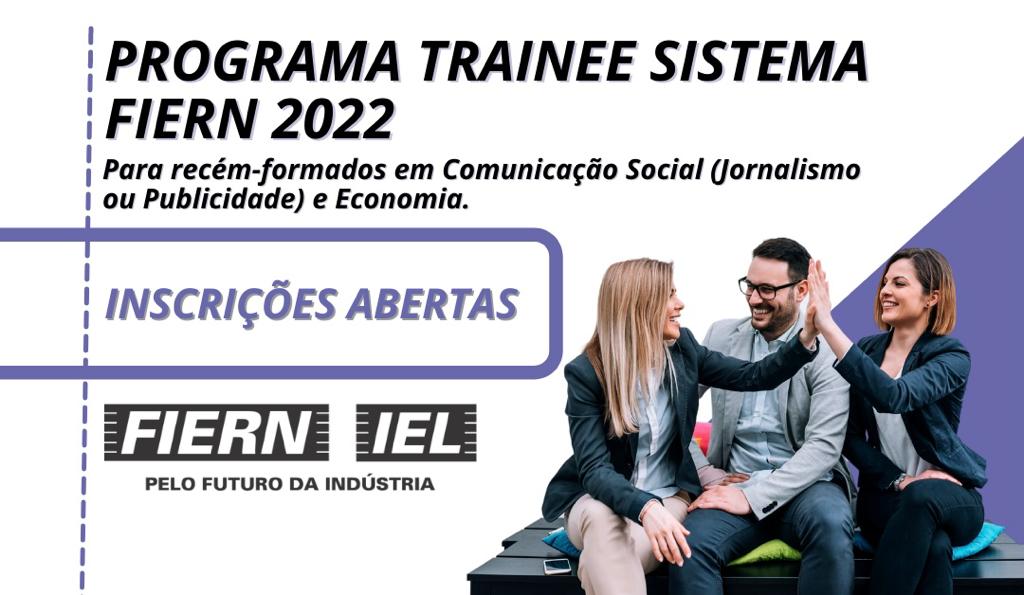 As inscrições para o Programa Trainee FIERN 2022 estão abertas até o dia 27 de fevereiro. A seleção é destinada a profissionais de nível superior recém-formados nos cursos de Economia e Comunicação Social (Jornalismo e Publicidade), que tenham sido graduados entre 2020.2 a 2021.2. Os interessados devem acessar a página do IEL-RN e inscrever-se, …