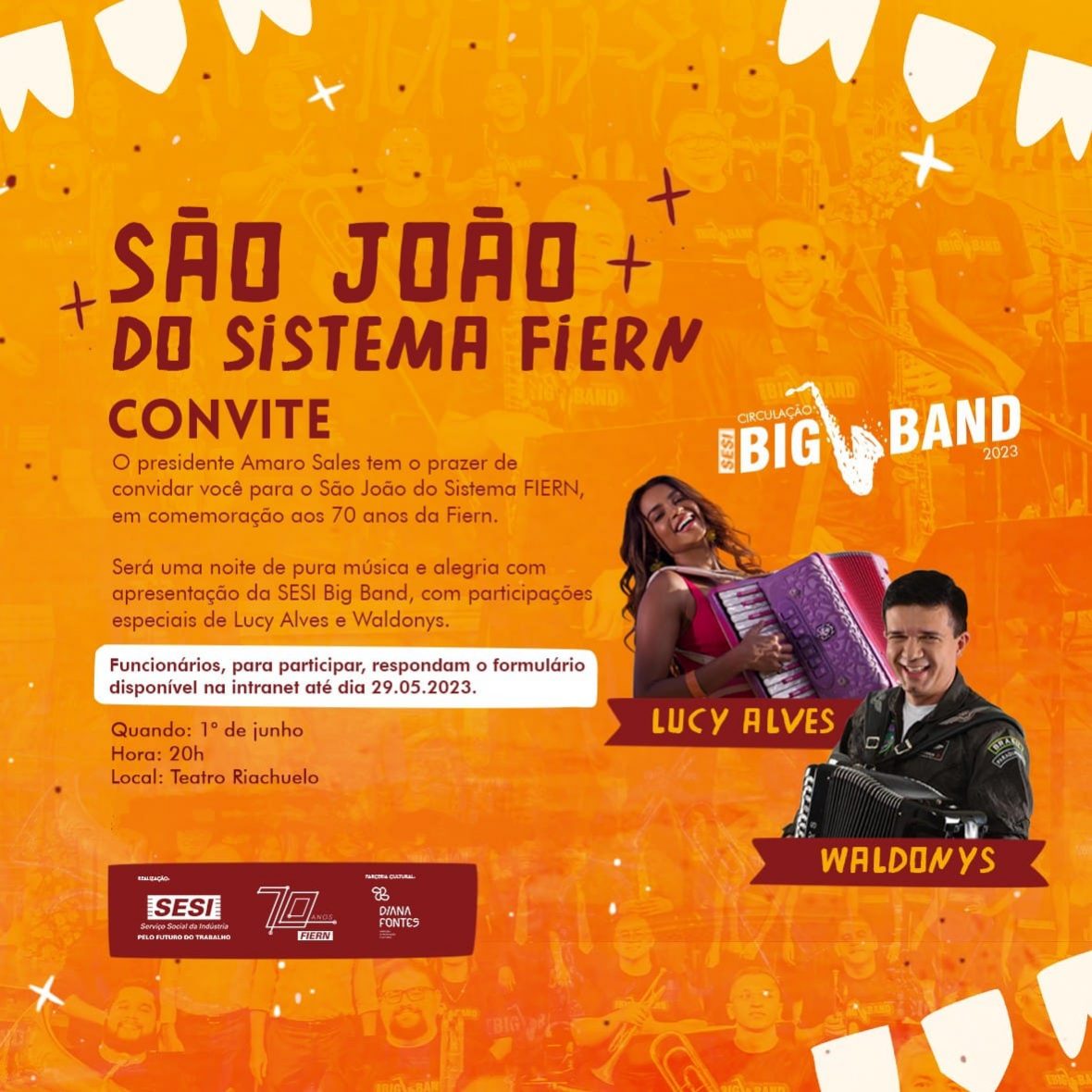 A Federação das Indústrias do Estado do Rio Grande do Norte (FIERN) promove, nesta quinta-feira, dia 1º de junho, no Teatro Riachuelo, o São João do Sistema FIERN. O evento, exclusivo para colaboradores, convidados e industriários, faz parte das comemorações dos 70 anos da federação. A festa terá apresentação da SESI Big Band, …