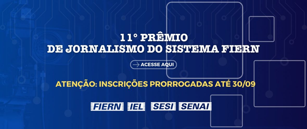 Os jornalistas profissionais e estudantes que desejam participar do 11º Prêmio de Jornalismo do Sistema FIERN têm agora até o dia 30 de setembro para inscrever seus trabalhos. As inscrições devem ser feitas com o envio do material e formulário de inscrição preenchido para o endereço eletrônico premiojornalismo@fiern.org.br. Os formulários para inscrição nos …