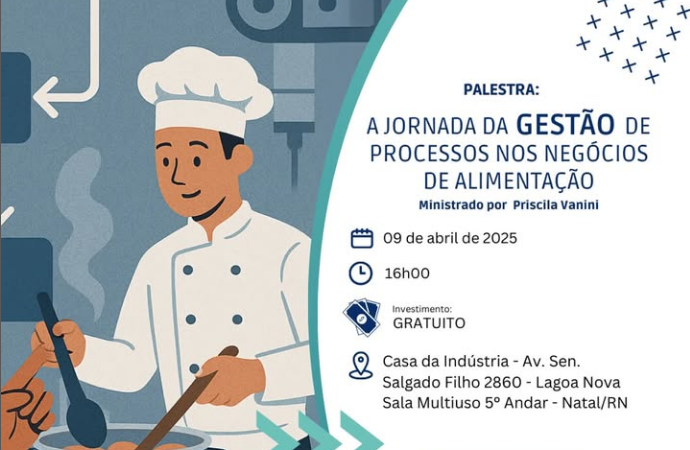O Instituto Euvaldo Lodi do Rio Grande do Norte (IEL-RN) realiza, no dia 9 de abril, a palestra “A Jornada da Gestão de Processos nos Negócios de Alimentação”, com Priscila Vanini. O evento é gratuito e tem o objetivo de apresentar estratégias para melhorar a produtividade e reduzir desperdícios em cozinhas profissionais. Inscreva-se através …